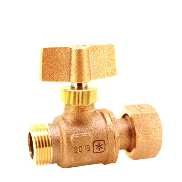 蝶形ハンドルのボール式メーター直結止水栓です。