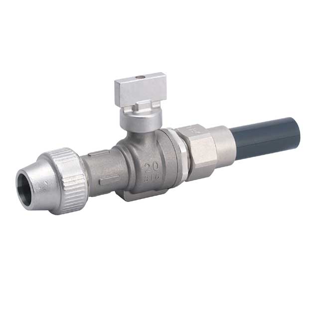 乙ハンドルのステンレス製ボール式止水栓、可とう式継手×HIガイドナットセット付きです。